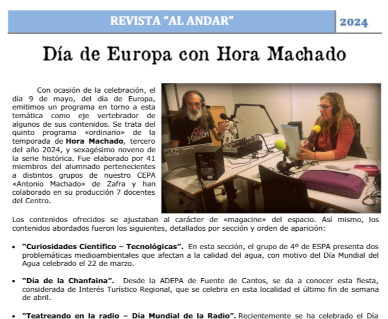 Os dejo algunas evidencias de la revista del centro "Al Andar"